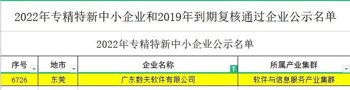 又一重大喜訊!數(shù)夫軟件榮獲廣東省專精特新企業(yè)!感謝來自官方的鑒定與認(rèn)可。我們當(dāng)不負(fù)眾望,不忘初心,繼續(xù)為企業(yè)做好專業(yè)的數(shù)字化轉(zhuǎn)型賦能服務(wù)。
