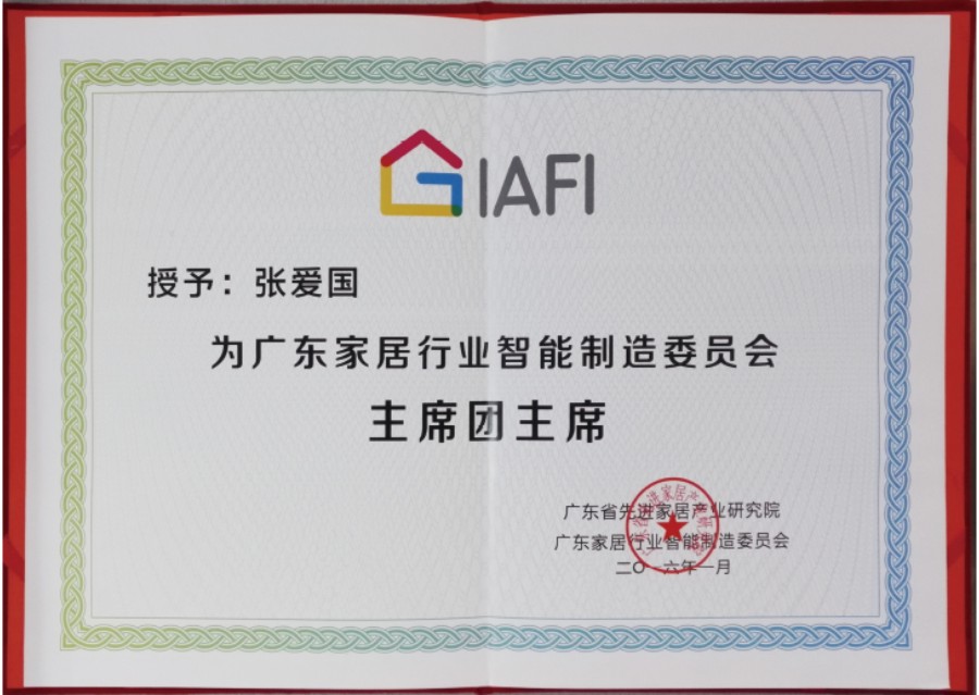 數(shù)夫創(chuàng)始人張愛(ài)國(guó)先生被授予廣東家居行業(yè)智能制造委 員會(huì) 主席團(tuán)主席