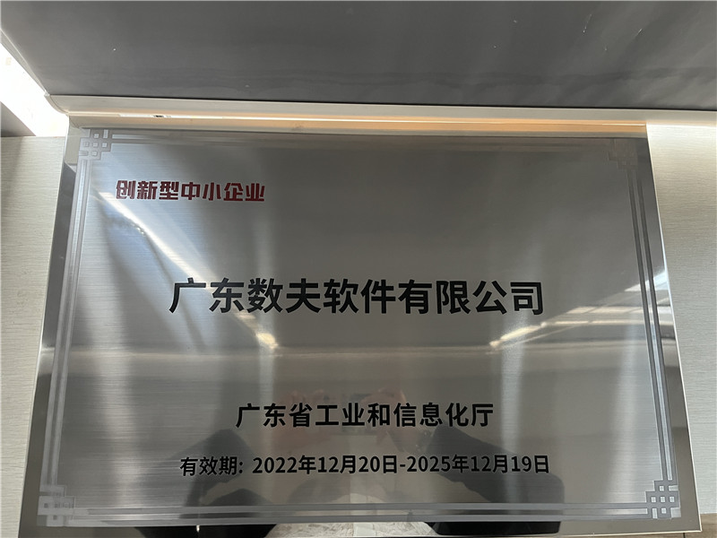 數(shù)夫軟件被評(píng)為“廣東省創(chuàng)新型中小企業(yè)”