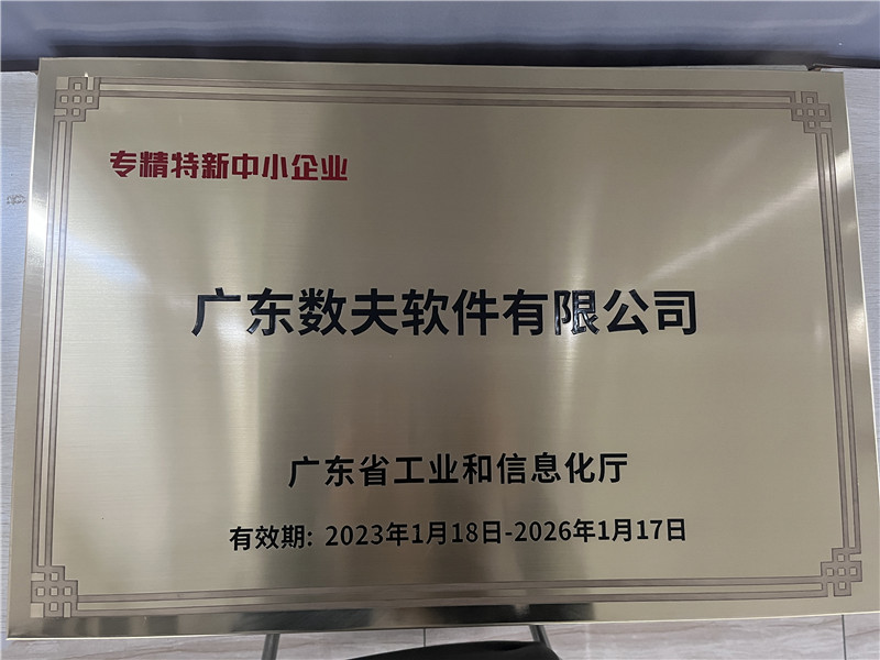 數(shù)夫軟件被評(píng)為“廣東省專精特新中小企業(yè)”