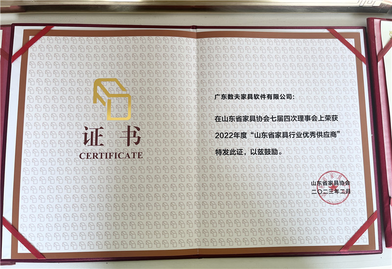 數(shù)夫軟件被評(píng)為“山東省家具行業(yè)優(yōu)秀供應(yīng)商”