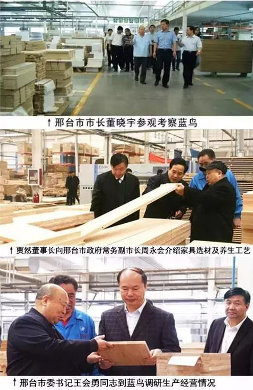 日前,邢臺市副市長張西軍同志到藍鳥調研生產經營情況。從車間出來,賈然董事長陪同市領導一行人又參觀了藍鳥家具產品展廳,在這里,張副市長等領導不僅看到了藍鳥產品,還目睹了藍鳥家具的發展。一行人佇立在藍鳥品牌文化墻前感慨良多!